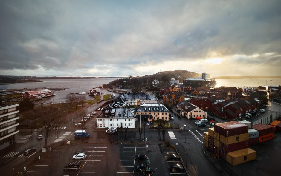 Gegen 10 Uhr schneit es in Kristiansand – das „Winterwonderland“ lässt sich pünktlich zu unserer Abreise sehen☺️ Ich beobachte noch lange das geschäftige Treiben auf dem Container-Verladeplatz, den wir vom Zimmer aus sehen können. Wahnsinn, was da für eine Logistik dahintersteckt.