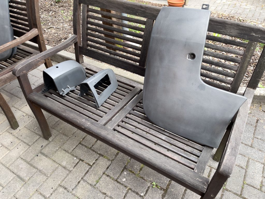 Nach zwei Tagen Schleifen und Säubern aller Teile konnte ich dann wieder mit dem Lackieren beginnen.