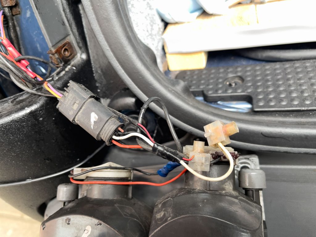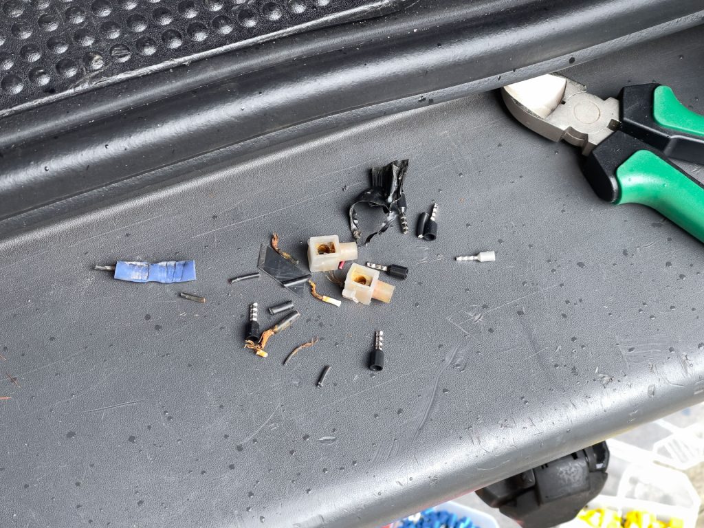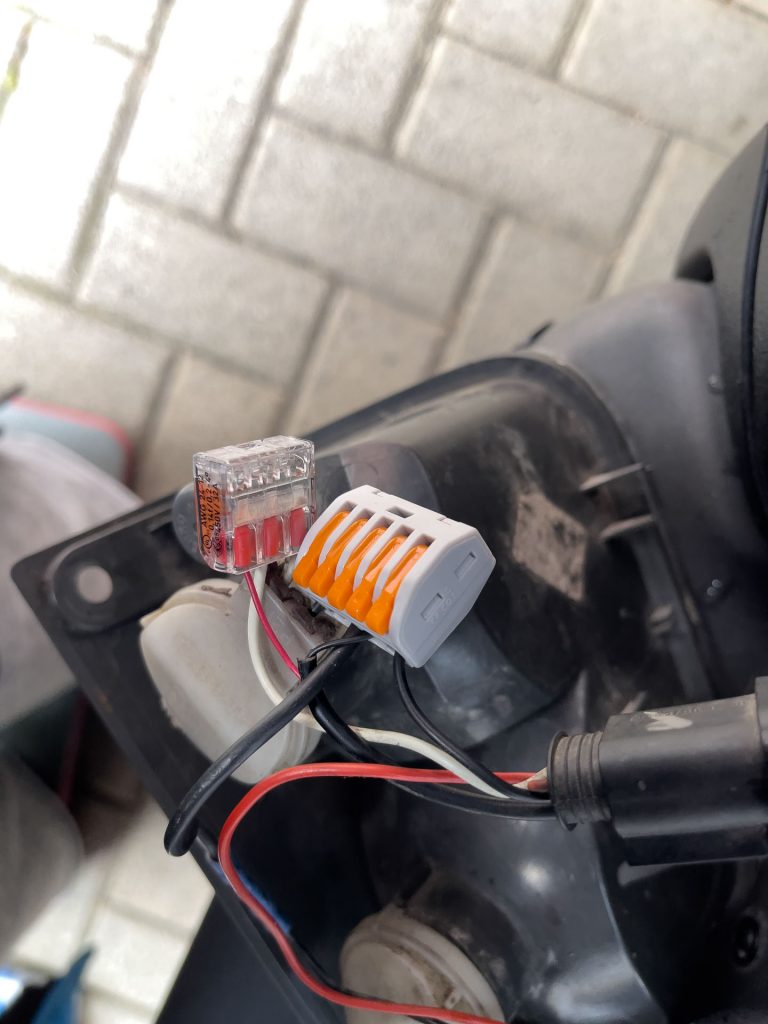 Beim Zusammenbau sind mir – natürlich – ein paar Kabel abgegangen. Auch hier entpuppte sich Hans wieder mal als „Bastelbude“. Ich glaube, das Rückfahrsystem wurde nachträglich installiert. Leider wurde auch hier mit alten Lüsterklemmen gearbeitet, die alle komplett durchgerostet sind. Ich habe alles gereinigt, die moddrigen Kabel abgeknipst und mit WAGO Klemmen neu verkabelt.