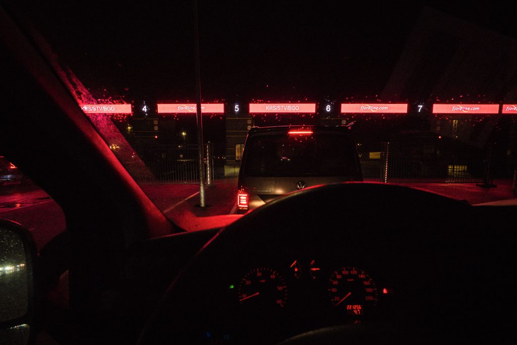 Die Fähre geht um 19:15 Uhr, also müssen wir eine Stunde vorher am Check-in-Schalter sein. Und diesmal kenne ich ja den Weg (aber ich habe entdeckt: Die Fjordline hat zumindest für Hirtshals eine neue Grafik eingefügt, damit man das Auto-Terminal besser finden kann).