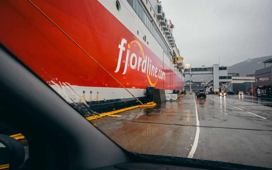 Die Fähre geht um 19:15 Uhr, also müssen wir eine Stunde vorher am Check-in-Schalter sein. Und diesmal kenne ich ja den Weg (aber ich habe entdeckt: Die Fjordline hat zumindest für Hirtshals eine neue Grafik eingefügt, damit man das Auto-Terminal besser finden kann).