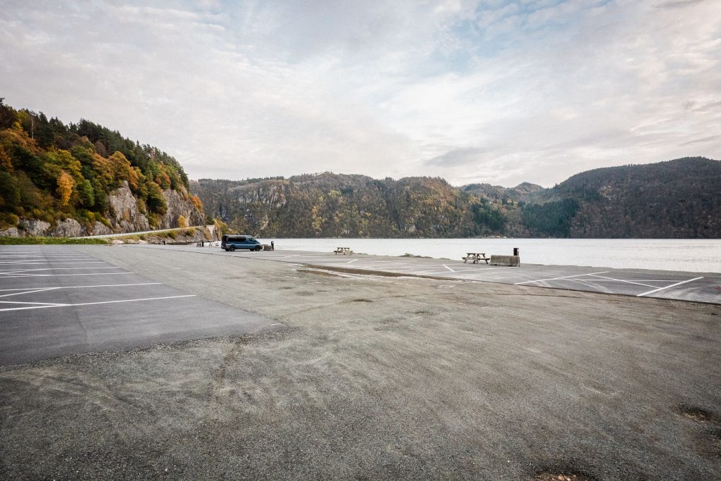 Schon nach wenigen Kilometern hinter Kristiansand sind Paul und ich von der Landschaft restlos begeistert. Berge und Wasser, auch die Farben der Natur wirken direkt anders, als man es gewohnt ist. Wir fahren ca. eineinhalb Stunden in Richtung Stellplatz, vor lauter „Naturgaffen“ fahre ich noch an der Ausfahrt vorbei und wir müssen umdrehen, finden aber den Weg dann direkt.
