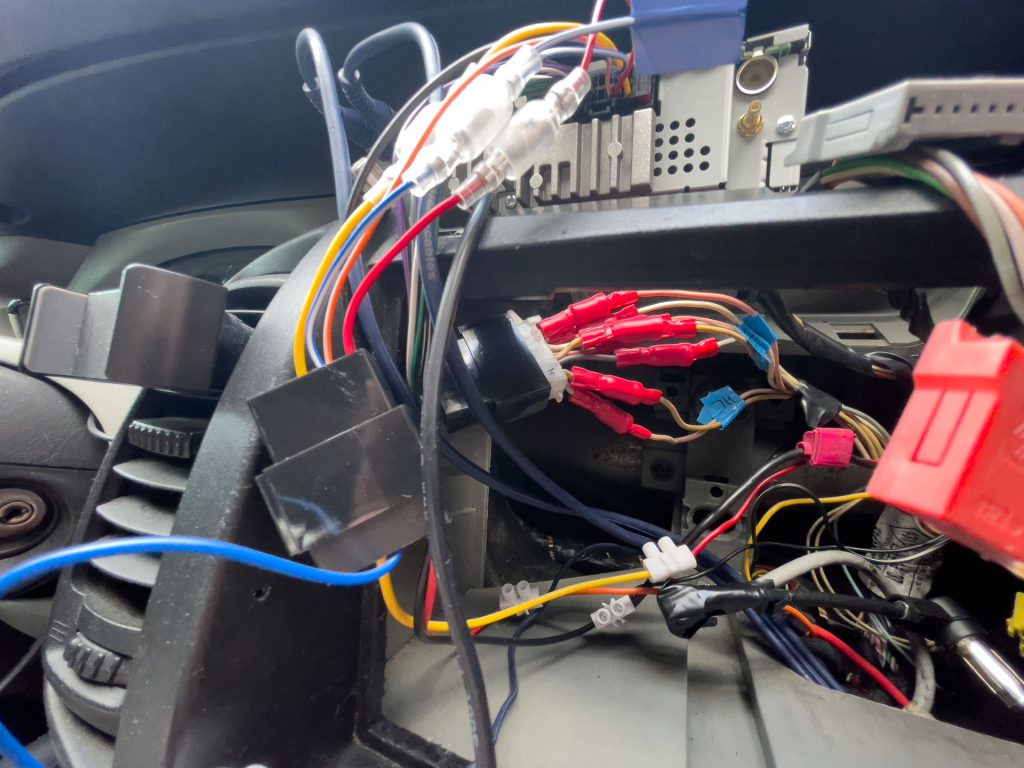 Was soll ich sagen: Irgendjemand war wirklich so blöd (sorry, aber ich ertrage das gerade nicht mehr!) und hat einfach ALLE Kabel vom Originalkabelbaum abgetrennt und IRGENDWAS (wieder einmal) mit Lüsterklemmen zusammengeschustert. Hatte ich bislang wirklich immer Verständnis für alles Gebastel, hier ist mir der Hut aber wirklich hochgegangen! Warum zur Hölle trennt jemand die Kabel von den ISO Steckern ab? Es gab schon früher Adapter für ein paar Cent, die man da einfach dazwischen steckt, und schon läuft alles! Aber NEIN: Alle Lautsprecherkabel wurden gekappt, ein Dutzend Klemmen hier, ein paar Steckerverbindungen da. Und ich sitze jetzt hier mit dem neuen Radio und kann mir erst einmal alles zusammensuchen. Ich könnte ausflippen🤯