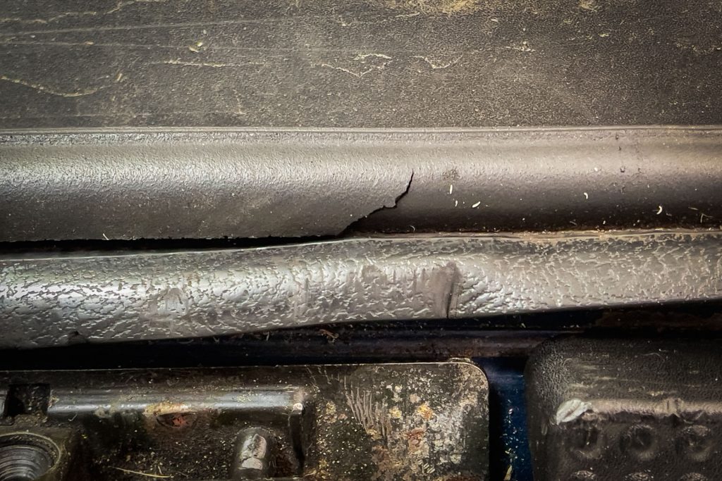 In dem Zusammenhang tausche ich direkt die Gummidichtung der Hecktüren. Die sind löchriger als ein Schweizer Käse, und ich sehe bei der Demontage, dass die Dichtung tatsächlich noch ein Original-Teil aus 2003 ist.